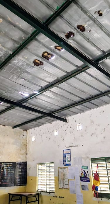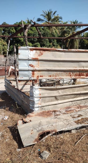 Remplacer les tôles abîmées pour que les 2 bâtiments puissent être utilisées toute l’année, même pendant la saison des pluies.